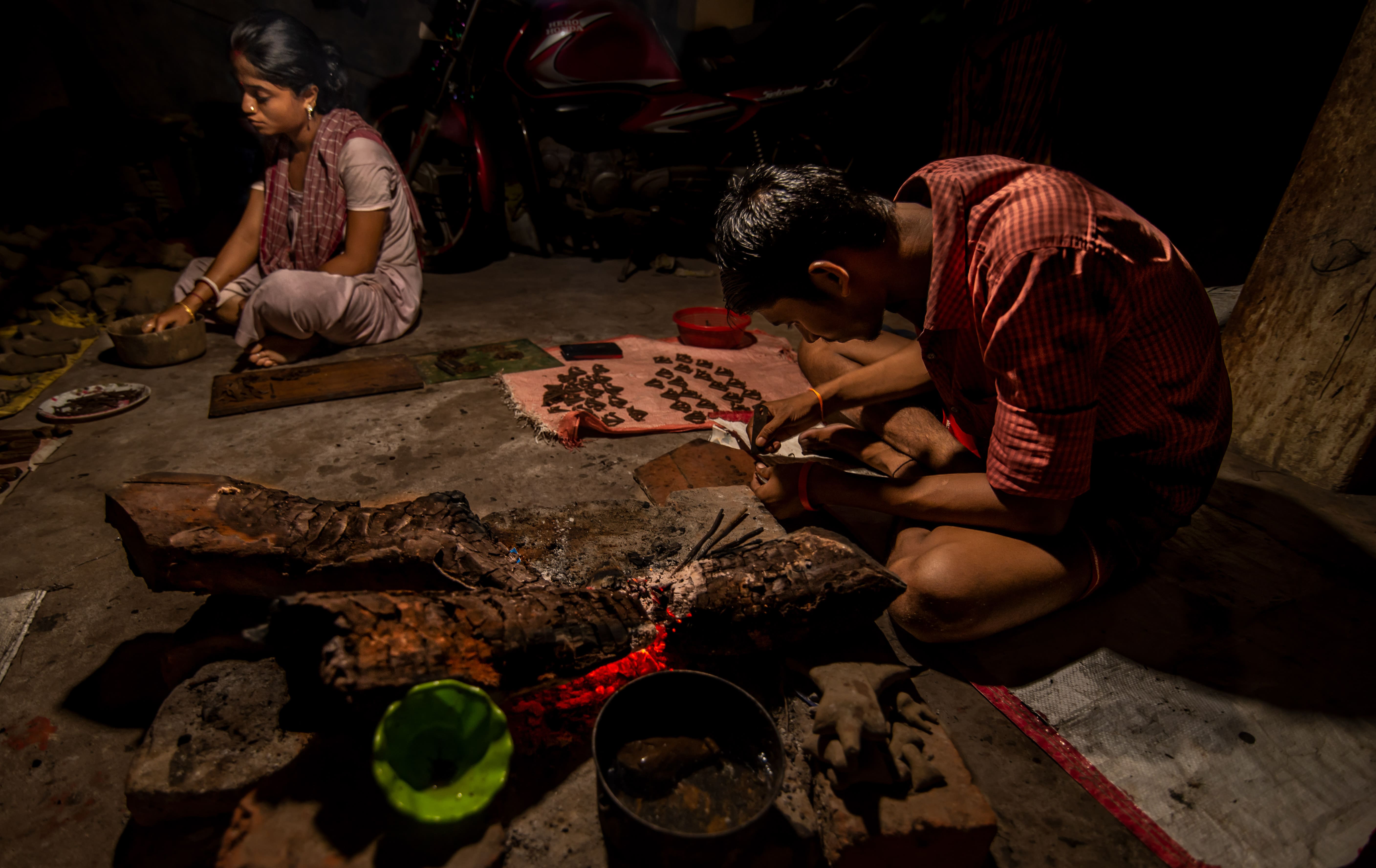 The Dhokra damar tribes of ancient India settled in different regions of the country; in West Bengal, they are continuing their non-ferrous metal casting work in mainly two places – Dariapur in Bardhaman and Biknaph in Bankura. The lost wax casting technique practiced by these artisans is more than 4000 years old : the earliest known example is the dancing girl of Mohenjo-daro. The primitive simplicity, charming folk motifs, rustic beauty and imaginative designs of the sculptures are breath taking and are widely appreciated in both domestic and international markets. All the family members except the very little ones are involved in the art, as income is rather meagre. Here are a few glimpses of the village and the people.